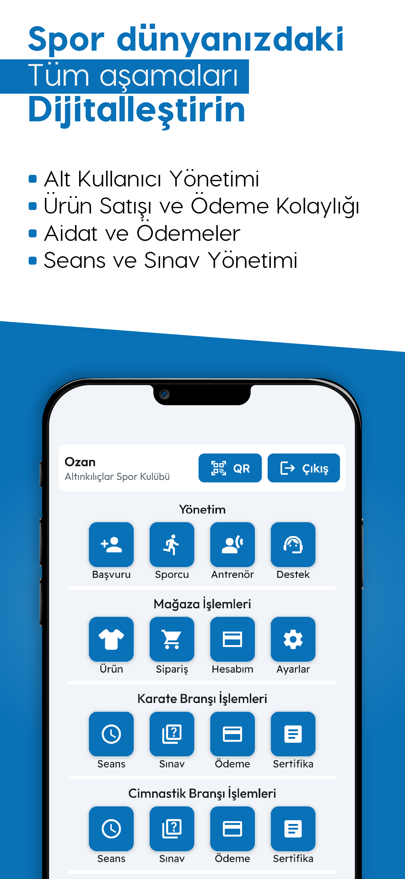 - Ürün Satışı ve Ödeme Alın: Spor kulüpleri, uygulama üzerinden ürünlerini listeleyebilir ve satışlarını gerçekleştirebilir. Nakit, havale ve kredi kartı ile ödemeleri kolayca alabilirler. Ayrıca, kulüpler, sadece kendi sporcularına özel ürün listesi oluşturabilir ve sporculara cazip alışveriş fırsatları sunabilir.