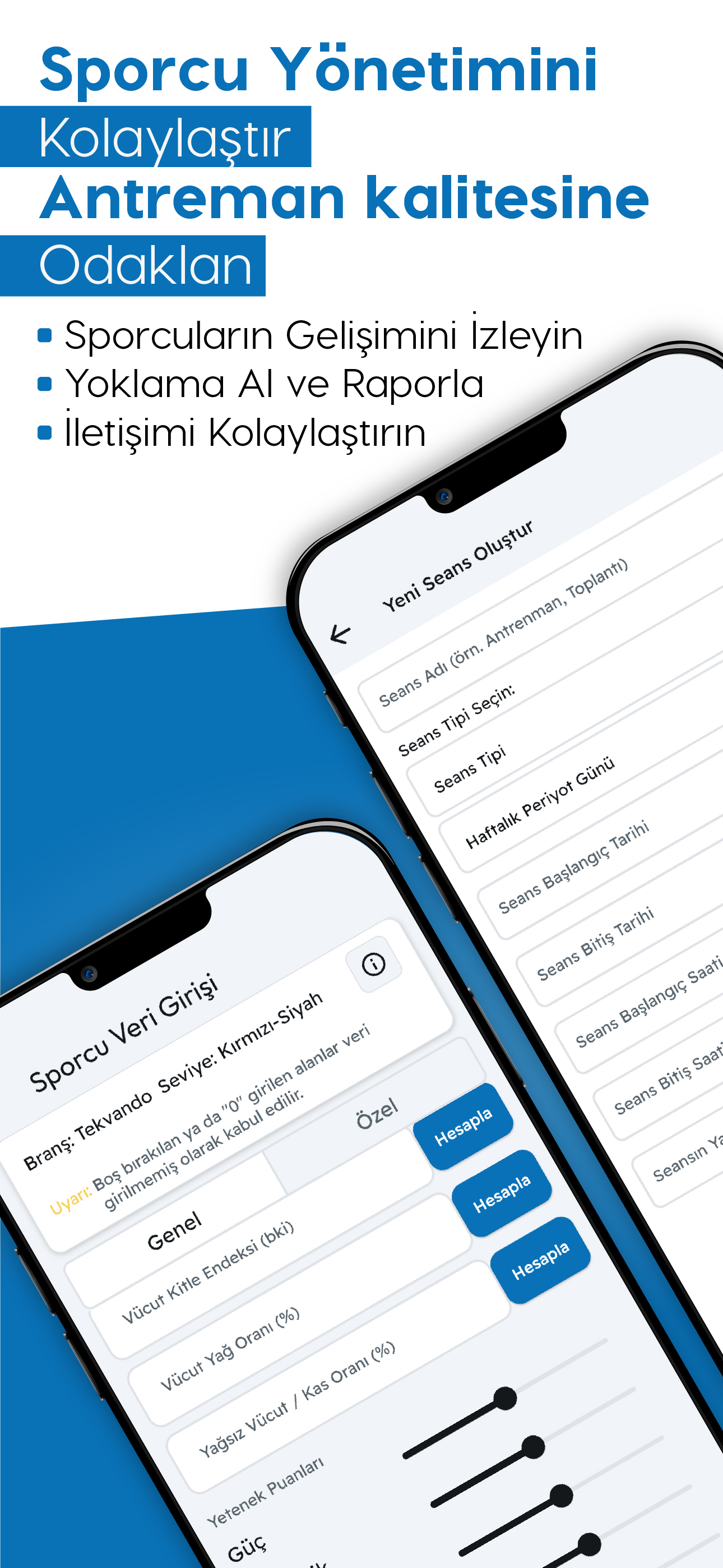 - Seanslar ve Sınavlar Yönetin: Antrenörler, kolayca seanslar oluşturabilir ve bu seanslara sporcuları atayabilir. Ayrıca, sınavlar düzenleyerek sporcuların performanslarını değerlendirebilir ve başarılı olanlara otomatik olarak sertifika verebilir. Tüm bu işlemler, bildirim, kısa mesaj veya WhatsApp mesajı ile sporculara iletilebilir.